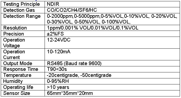1.Module detects a non-dispersive infrared principle (NDIR) detection technology;